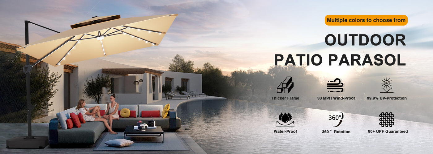 Patioslife Aegis Pro™ Cantilever Parasol with LED Lights, Reinforced & Powder-Coated Aluminium Ribs and Pole — Perfect for Garden & Patio - 3x3m (#1 Choice) / Tan is backordered and will ship as soon as it is back in stock.