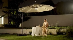 Sturdy and stylish umbrella. The LED lights are perfect for evenings, and the cover keeps it protected when not in use.