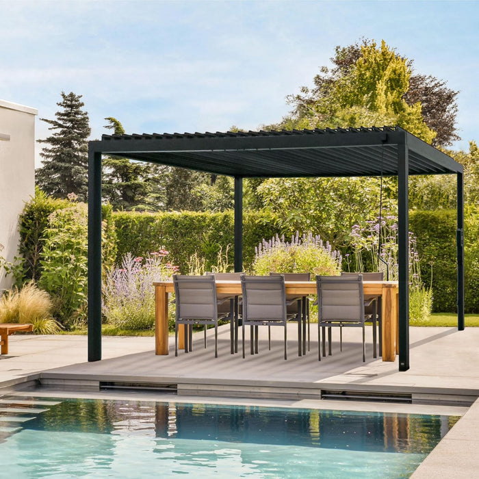 Whether you’re planning a summer barbecue, relaxing with an afternoon tea, or creating a stylish outdoor dining area, this freestanding pergola brings comfort and versatility to any garden, patio, or poolside. The smooth hand-crank mechanism lets you tilt the louvre roof with ease, giving you the choice of sunshine or shade — perfect for the unpredictable British climate.
