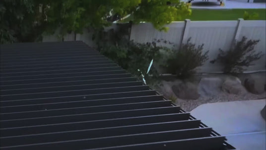See how our pergola handles rain seamlessly. Watch water flow effortlessly through hidden channels and out the posts, keeping your patio dry and comfortable—proof that smart design meets real-world performance.