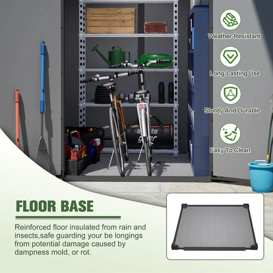 Rain or shine, the UV-resistant, waterproof, and rustproof material helps keep tools, bikes, and equipment dry and in good condition, without the need for painting or upkeep.
