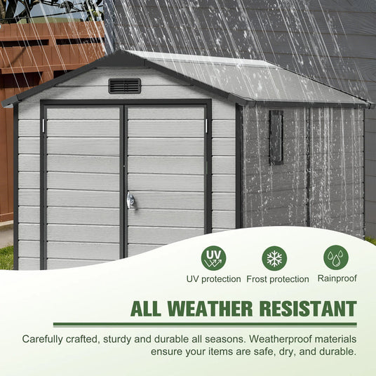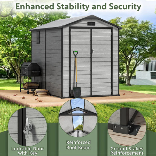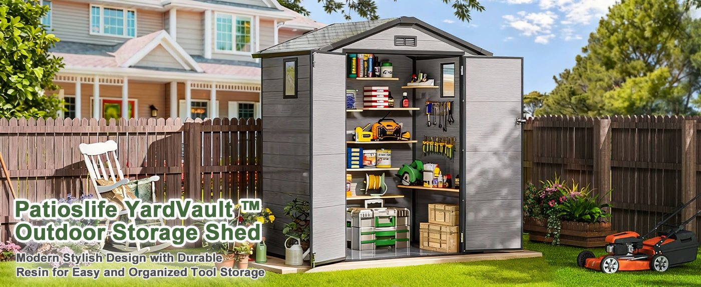 The Patioslife YardVault Resin Storage Shed is a tough, low-maintenance solution designed for year-round backyard storage. Made from durable double-layer resin with reinforced HD panels, it’s built to stay strong through harsh weather while keeping your belongings protected.
